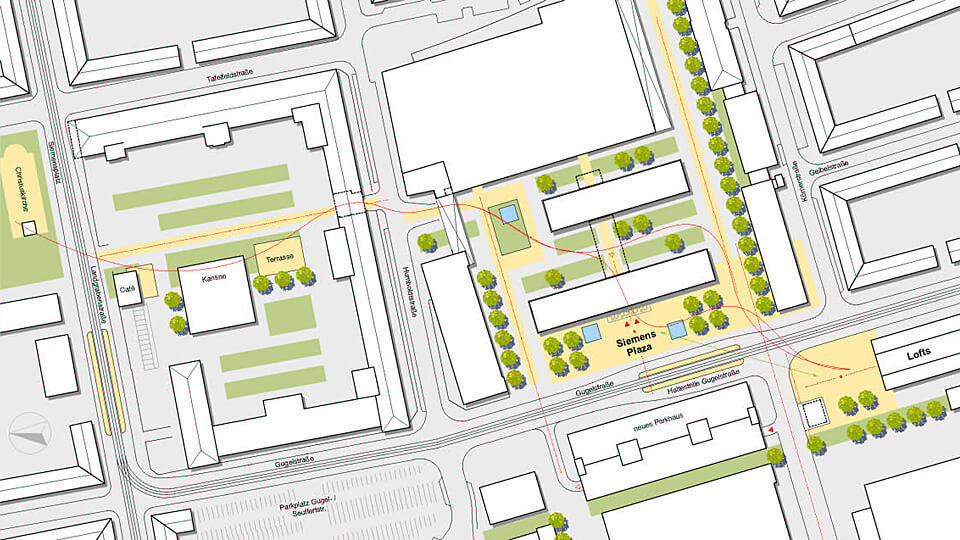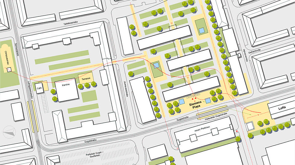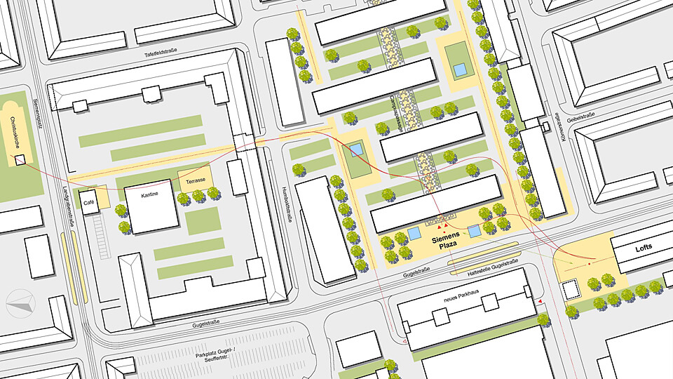 Siemens Technopark Nürnberg Vorentwurf für ein Bürogebäude und Konzeption für einen Campus Bauherr – Siemens Technopark Nürnberg GmbH & Co. KG Ort – Gugelstraße, Nürnberg Nutzfläche – 4.000 qm Planungszeit – 2008 © by dörr & irrgang Freie Architekten