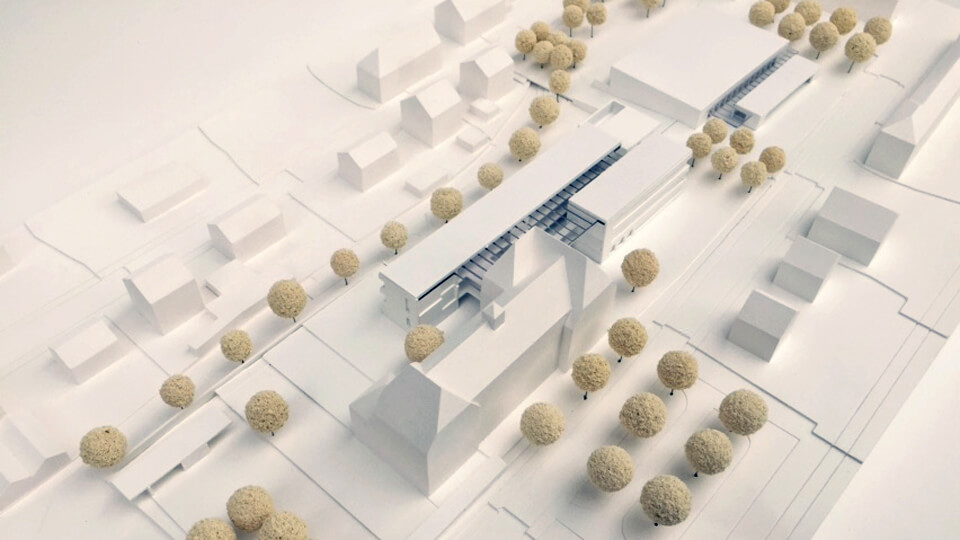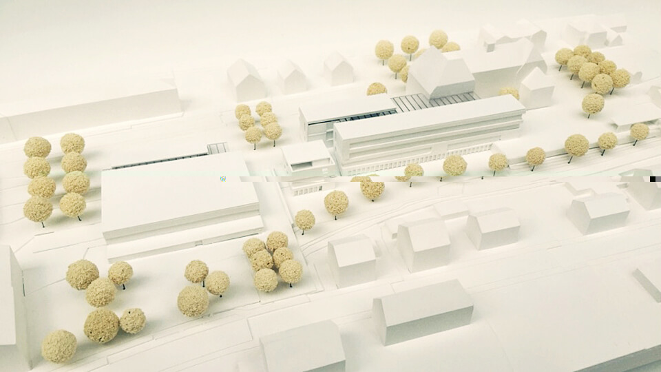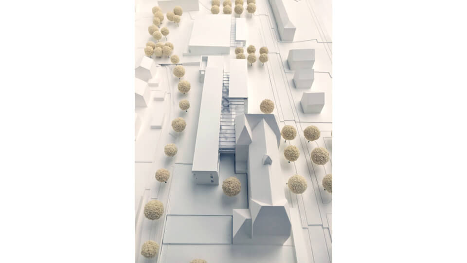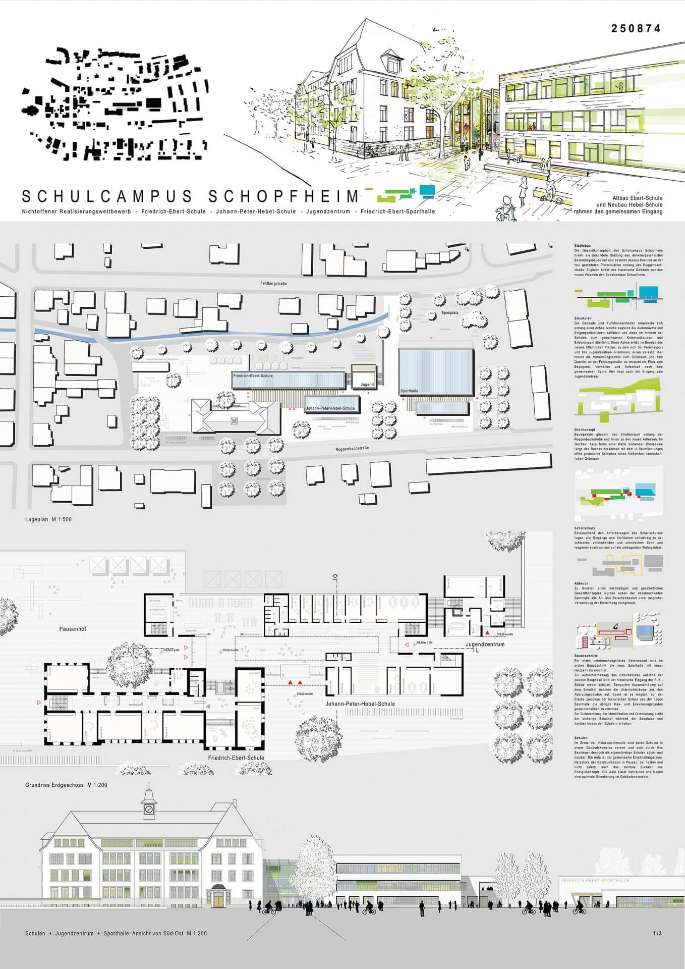 Die Gesamtkonzeption des Schulcampus Schopfheim nimmt die besondere Stellung des denkmalgeschützten Bestandsgebäude auf und bestärkt dessen Position an der neu gestalteten Platzsituation entlang der Roggenbachstraße Zugleich bildet das historische Gebäude mit den neuen Volumen den Schulcampus Schopfheim.