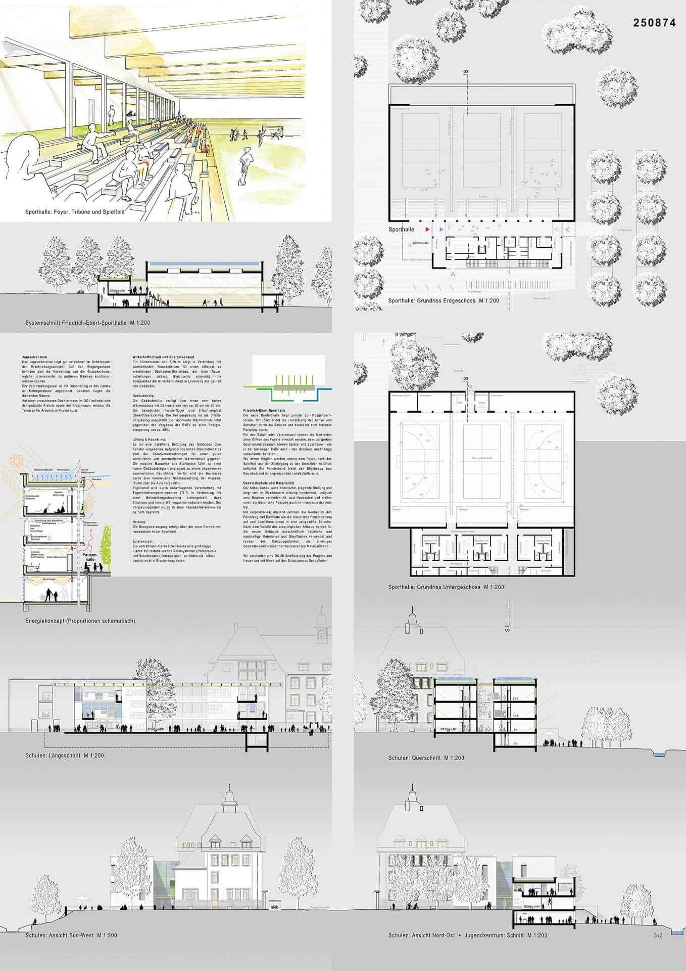 Zu Gunsten eines nachhaltigen und ganzheitlichen Gesamtkonzeptes wurden neben der abzubrechenden Sporthalle alle An- und Zwischenbauten unter möglicher Verwendung der Einrichtung rückgebaut.